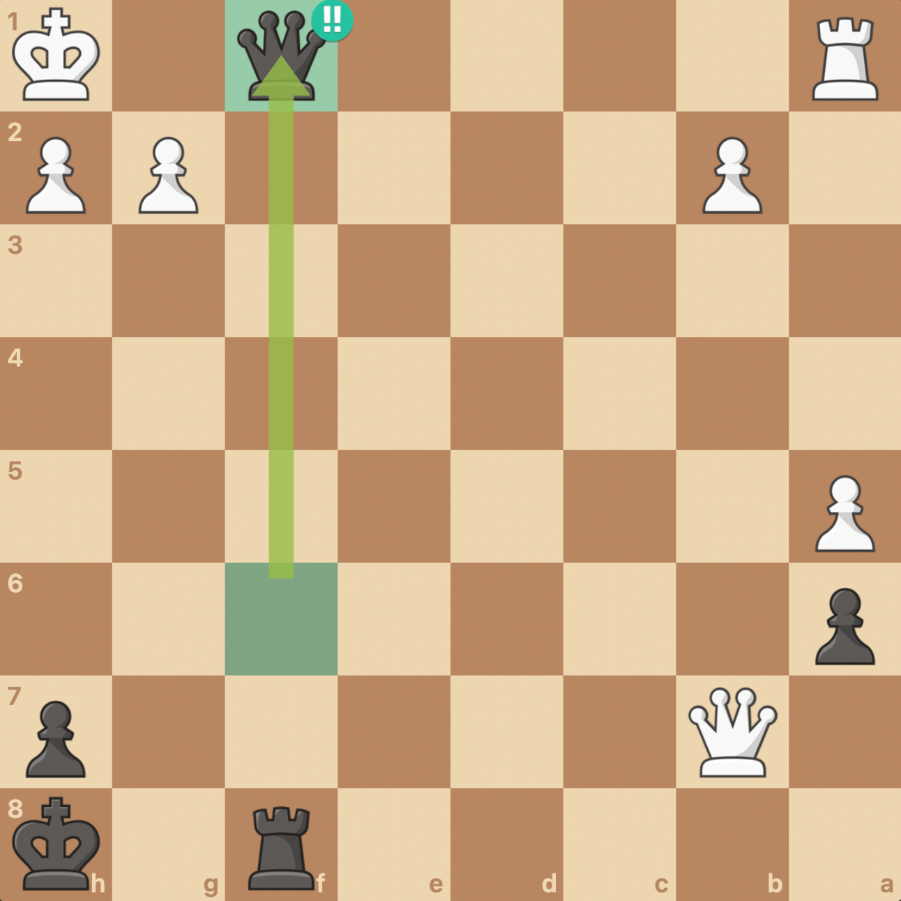 After pawn takes rook, Bf1 leads to checkmate